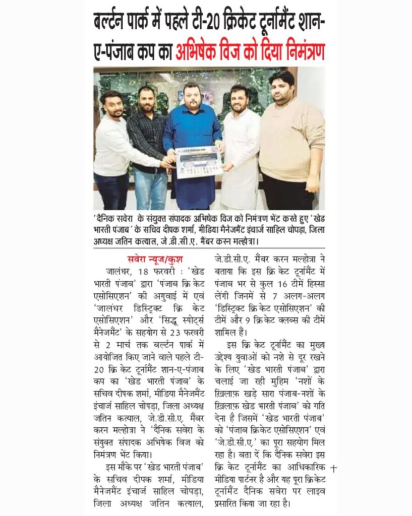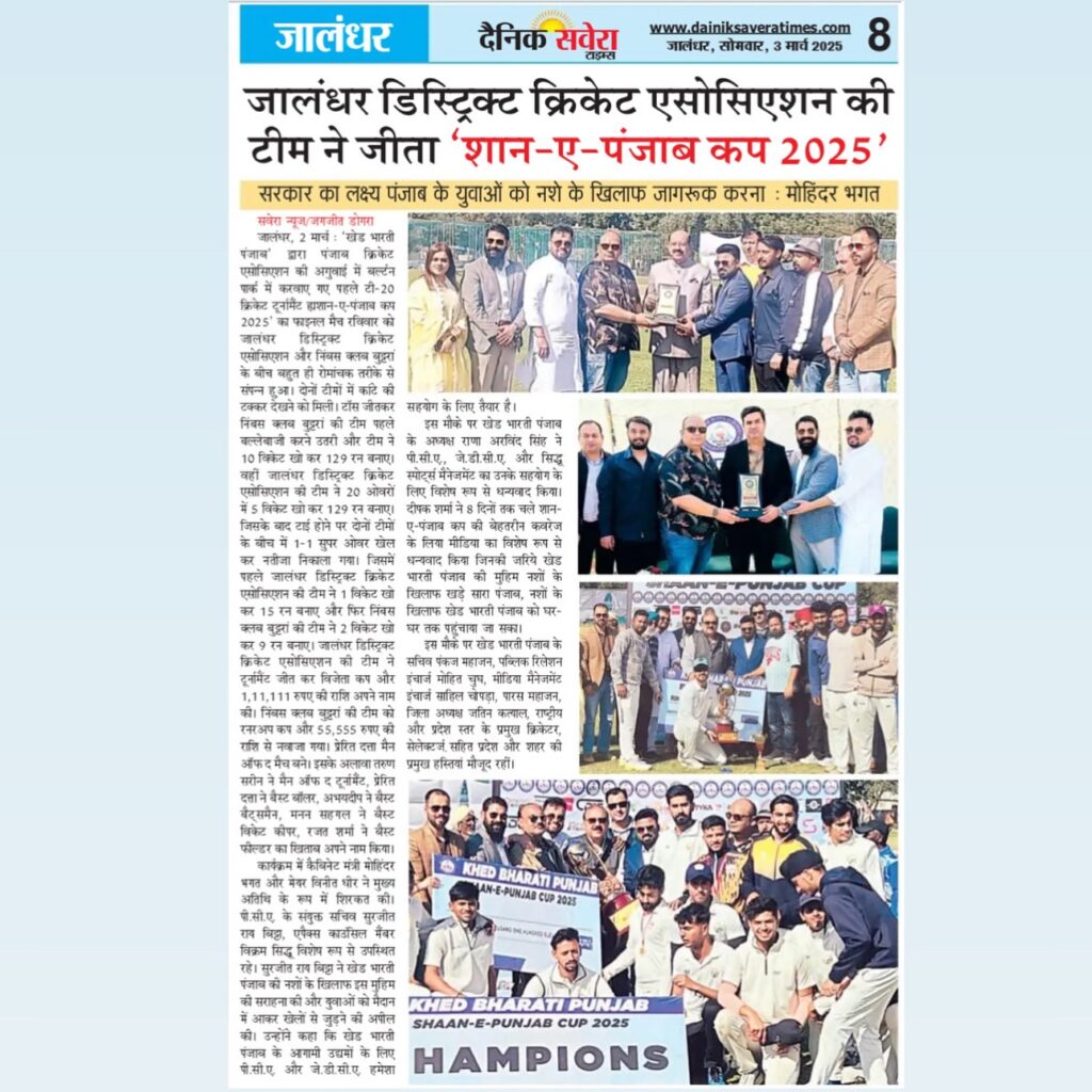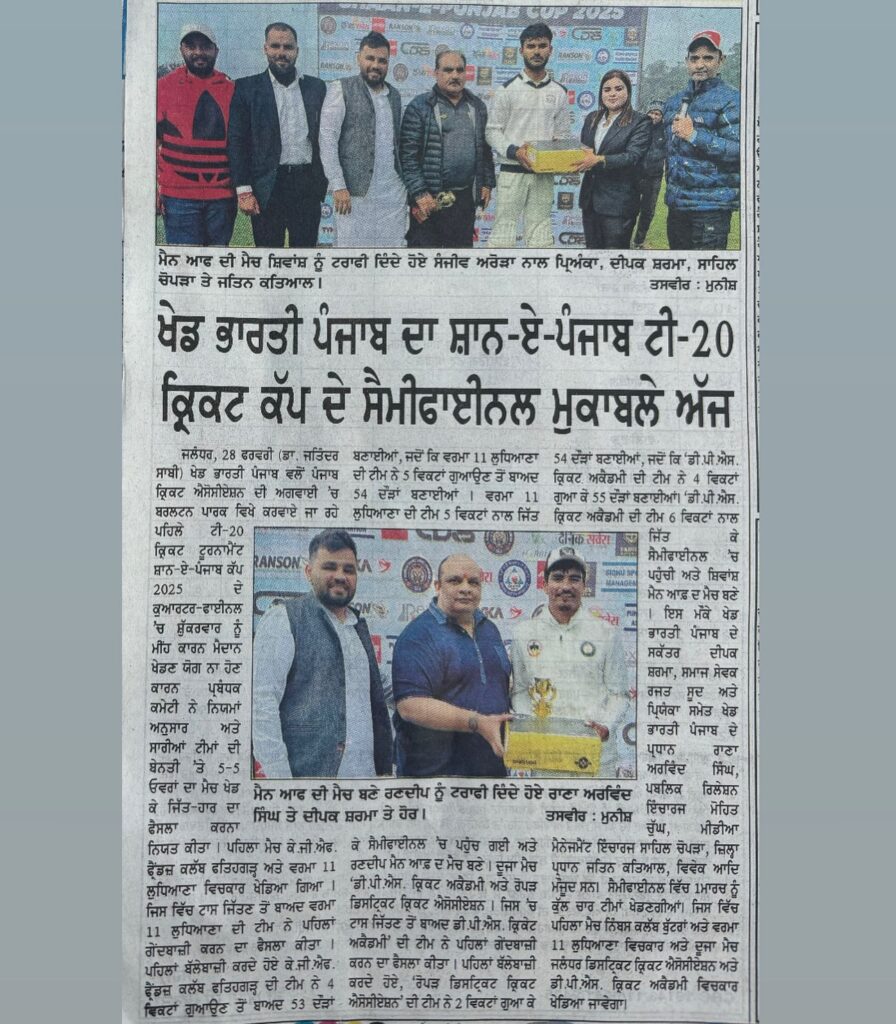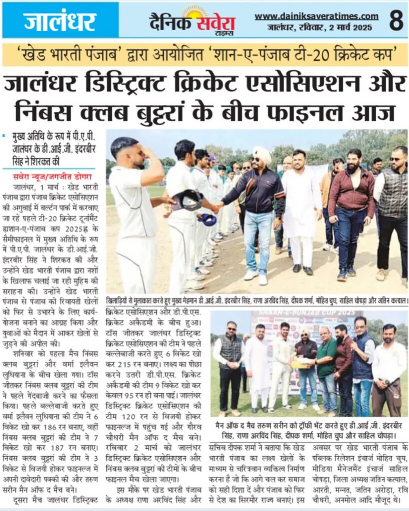 In the heart of Jalandhar, where cricket pulses through every galli and ground, Khed Bharati Punjab proudly organized the Shaan-e-Punjab T20 Cricket Tournament—a spectacular celebration of youth, sport, and the indomitable Punjabi spirit.
