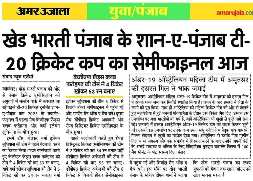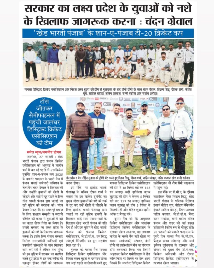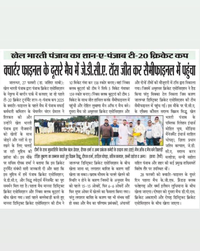 Organized with the wholehearted support of the Punjab Cricket Association (PCA) and the Jalandhar District Cricket Association (JDCA), the tournament brought together top-tier young cricketing talent from across the region. Held at [Insert Venue Name], this landmark event aimed to create a platform for emerging players to showcase their skills and gain exposure under the watchful eyes of selectors, coaches, and sports enthusiasts.
